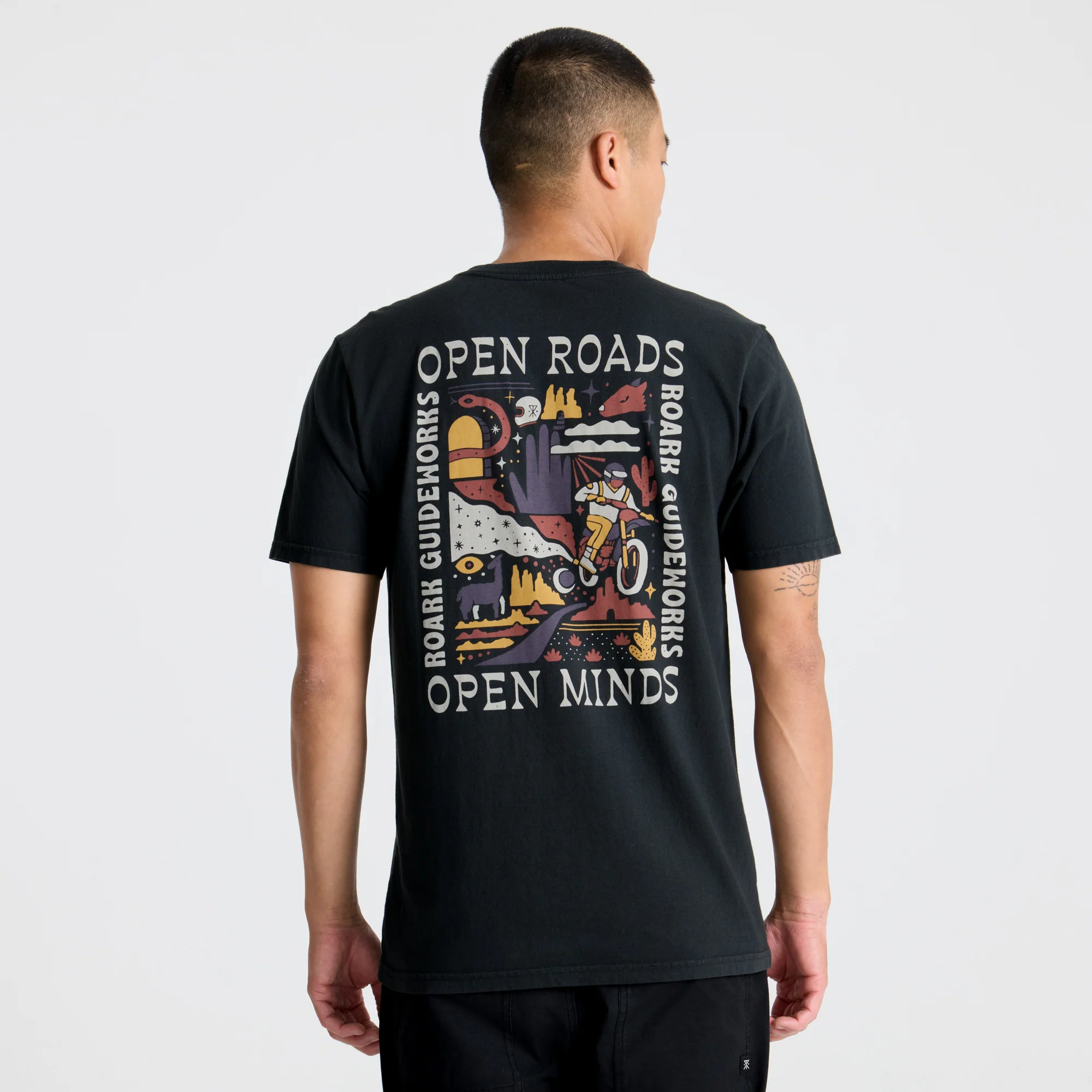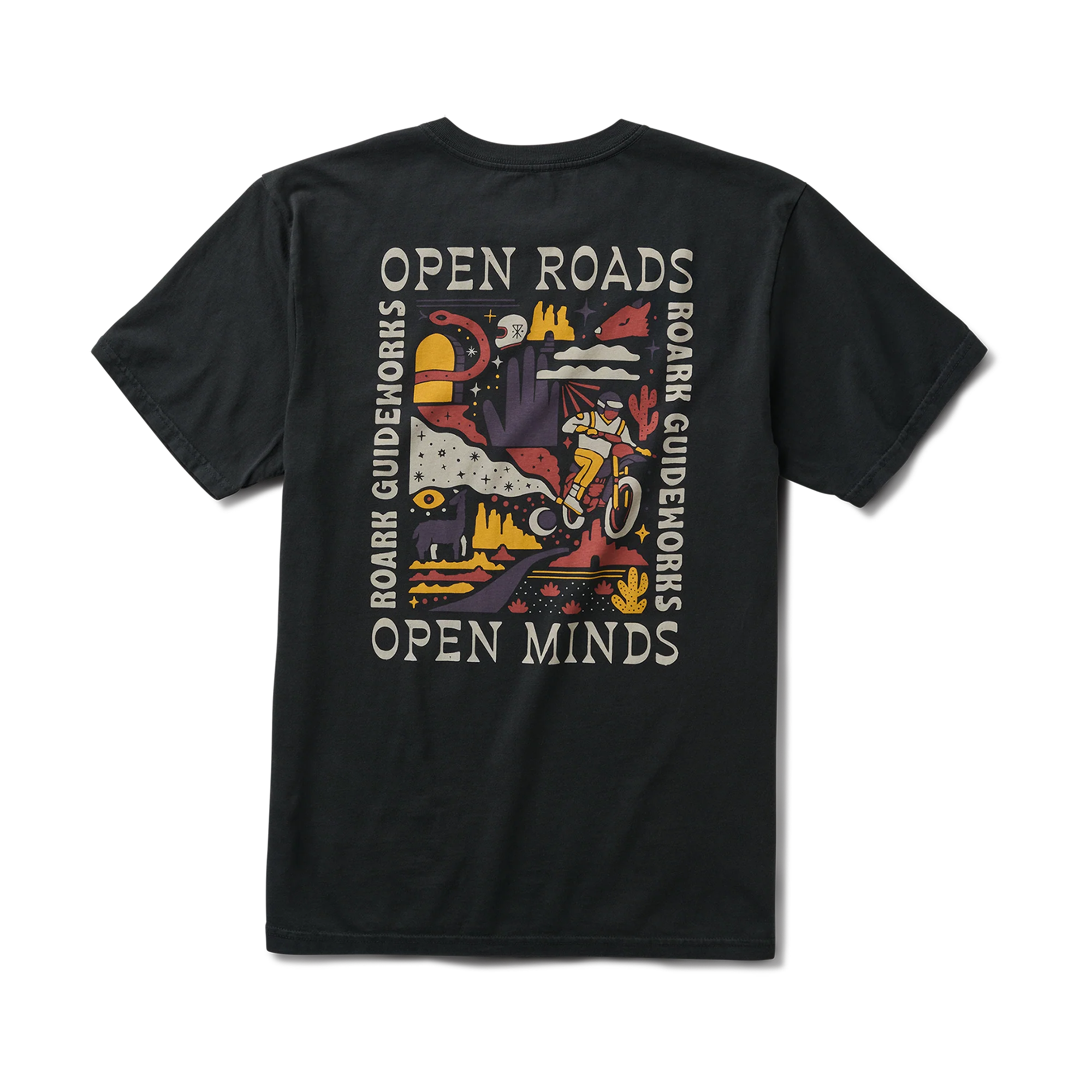 The Open Roads Open Minds Tee captures the spirit of Roark Guideworks with a bold, colorful back graphic that celebrates exploration and perspective. Featuring desert trails, wild landscapes, and a rider in motion, it's a reminder that the road ahead is as much about mindset as it is about miles.