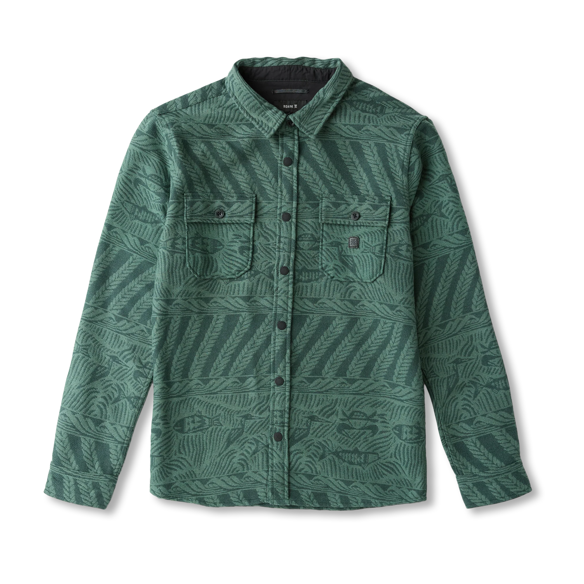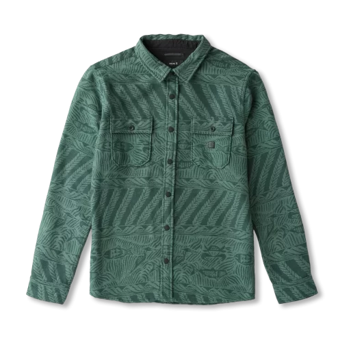 Built to withstand the rigors of the road and the rhythm of the unknown, the Nordsman Jacquard brings heritage craftsmanship to Roark’s most iconic flannel silhouette. Woven from 100% organic cotton and crafted in a Fair Trade Certified™ factory, this heavyweight shirt fuses style, sustainability, and durability in every stitch. The custom jacquard pattern nods to global textiles and the stories they carry, while the snap front and dual chest pockets deliver practical function for life lived off the grid. Whether layered for cold mountain mornings or worn solo in desert dusk, the Nordsman stands ready for the long haul. Timeless. Tough. Trail-tested.